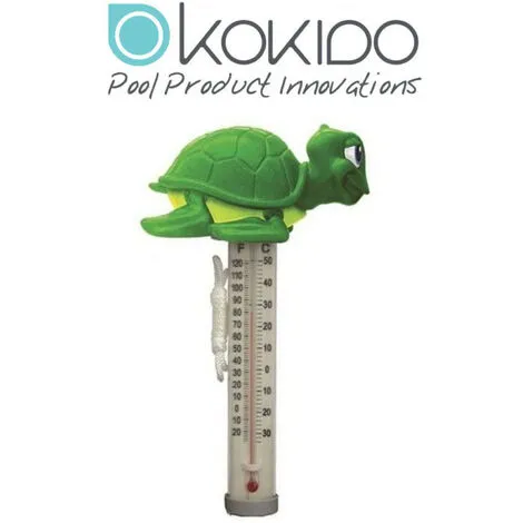 -Thermomètre de piscine Kokido Cool Animal.-Bar, crocodile ou grenouille.-degrés Celsius et Fahrenheit.-Grand et clair échelle.-Corps de haute qualité moulé dans un matériau sans phtalates 6.-Cordon d’amarrage.-Garantie du fabricant, Kokido.