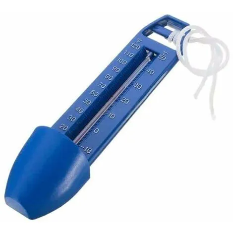 Thermomètre de piscine de couleur bleu, pour prendre la température en °C de votre piscine. Avec cordelette pour l’attacher.